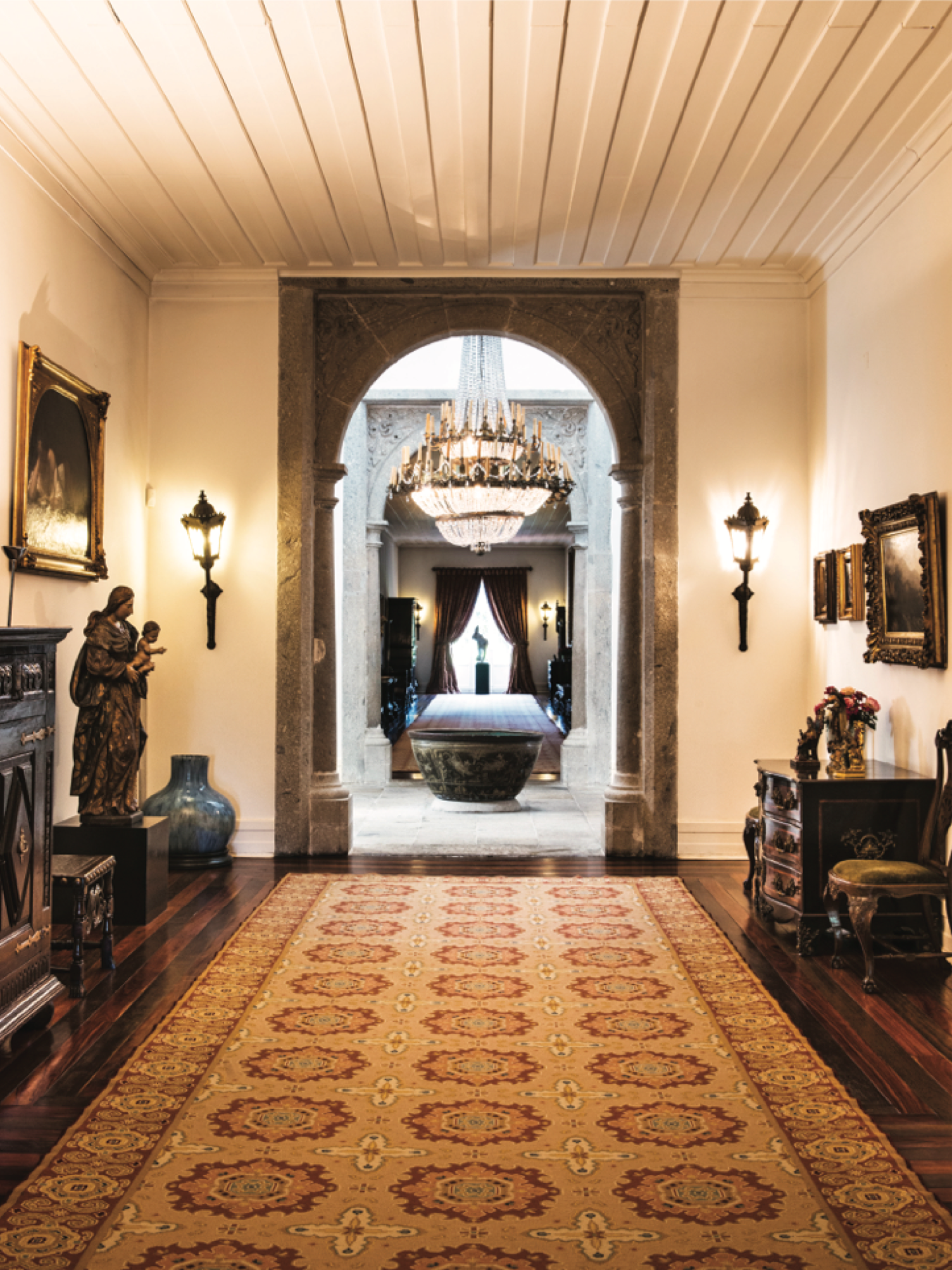 (A view of the interior and of the Italian-style gardens, tended to perfection, of Paço de Palmeira, the eighteenth-century home of Carlos Dias. The house was built by Don José de Bragança, archbishop of Braga, who was also a prince of the royal family, showcasing conservationism and respect for Portugal’s environmental, architectural and artistic legacy.)