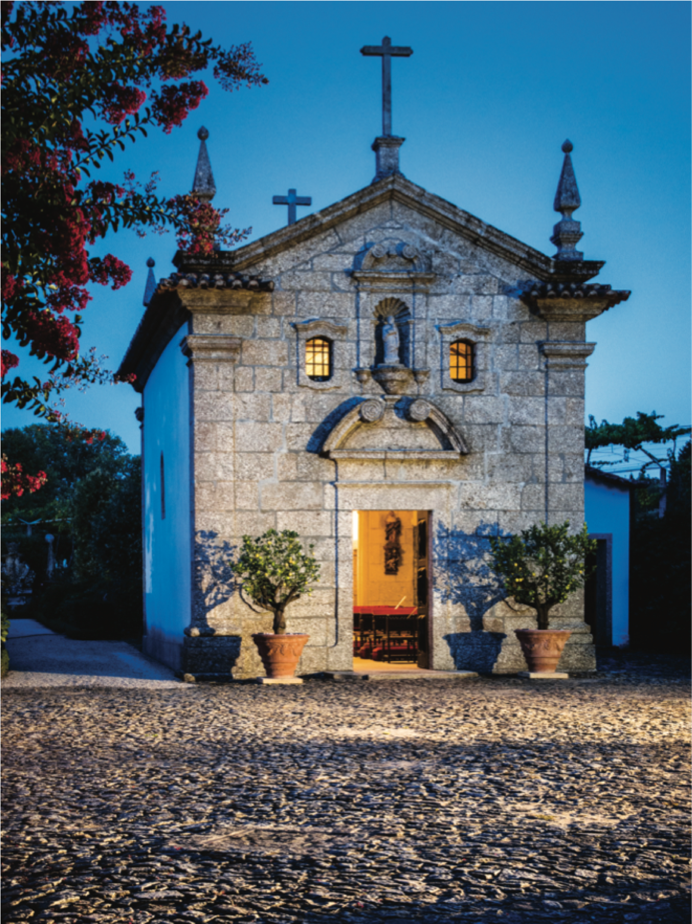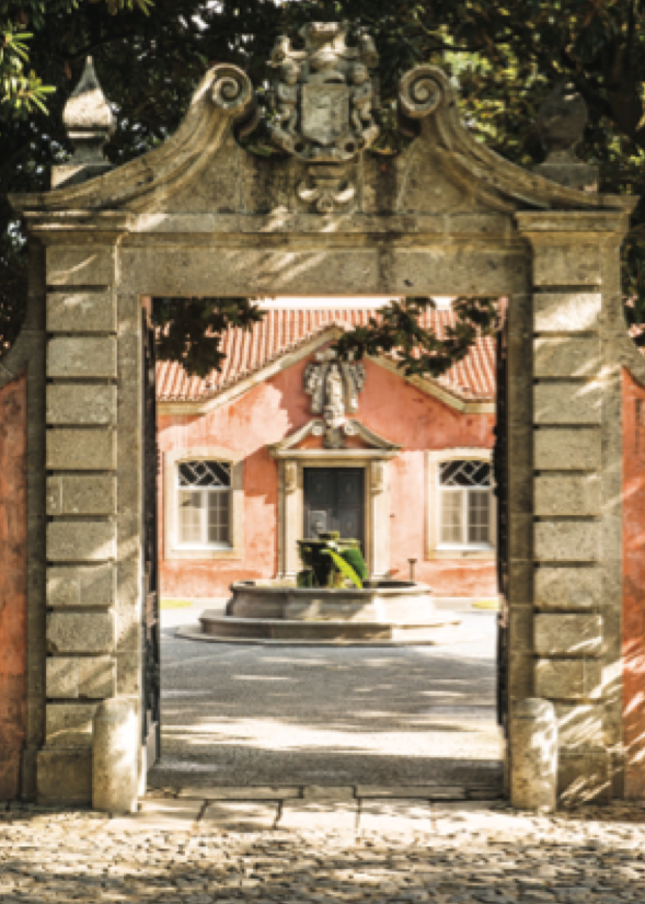 (The special livery of Quinta da Pedra Alvarinho 2010, a white wine made from the noble Alvarinho variety, characteristic of the Minho region; elegant geometrical perspectives of Paço de Palmeira.)