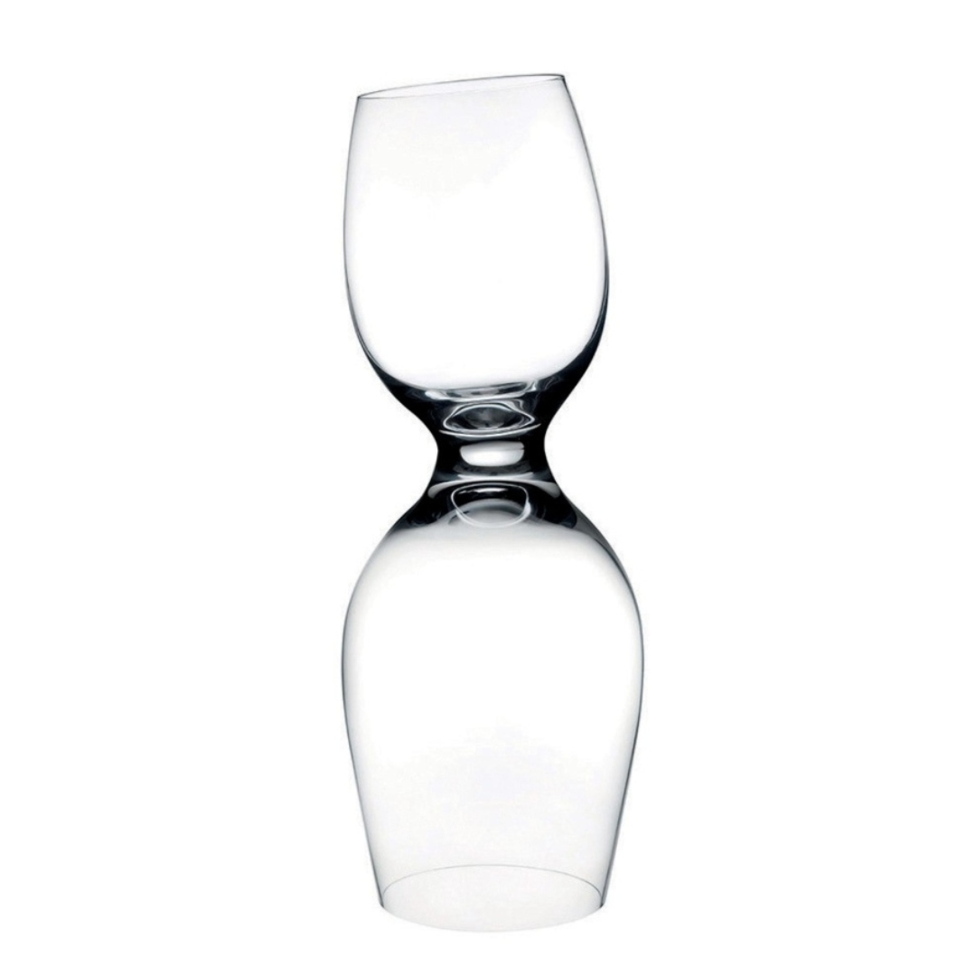 An emblem of an architect and industrial designer, Ron Arad likes to think outside of the box and disregard the notion of boundaries. This “Red or White” wine glass from the Ron Arad Signature Collection for Nude is a masterfully hand-made lead-free crystal glass. Interestingly, the curve of the glass reflects the way people who bend close to eavesdrop or whisper a secret. The upside- down aspect of this creative glass is designed for wine lovers to move from white to red in a second without going through the hassle of getting a new glass. A twist of the wrist, you can proceed to taste a different wine.