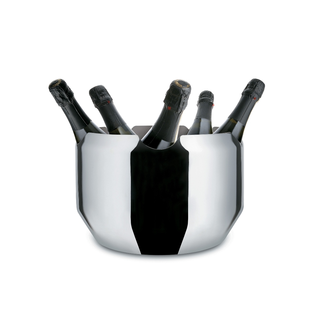 Designed by renowned industrial designer Giulio Lacchetti, made in Italy, this wine cooler by Alessi can hold up to five bottles of wine or two magnums. Inspired by the vasque of the French wine tradition, this essential offers the highest degree of form and function.