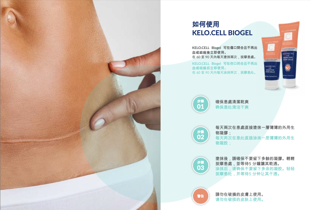 KELO.CELL Biogel 活膚修復凝膠在皮膚組織、傷口癒合、燒傷和疤痕方面擁有市場上最先進的配方