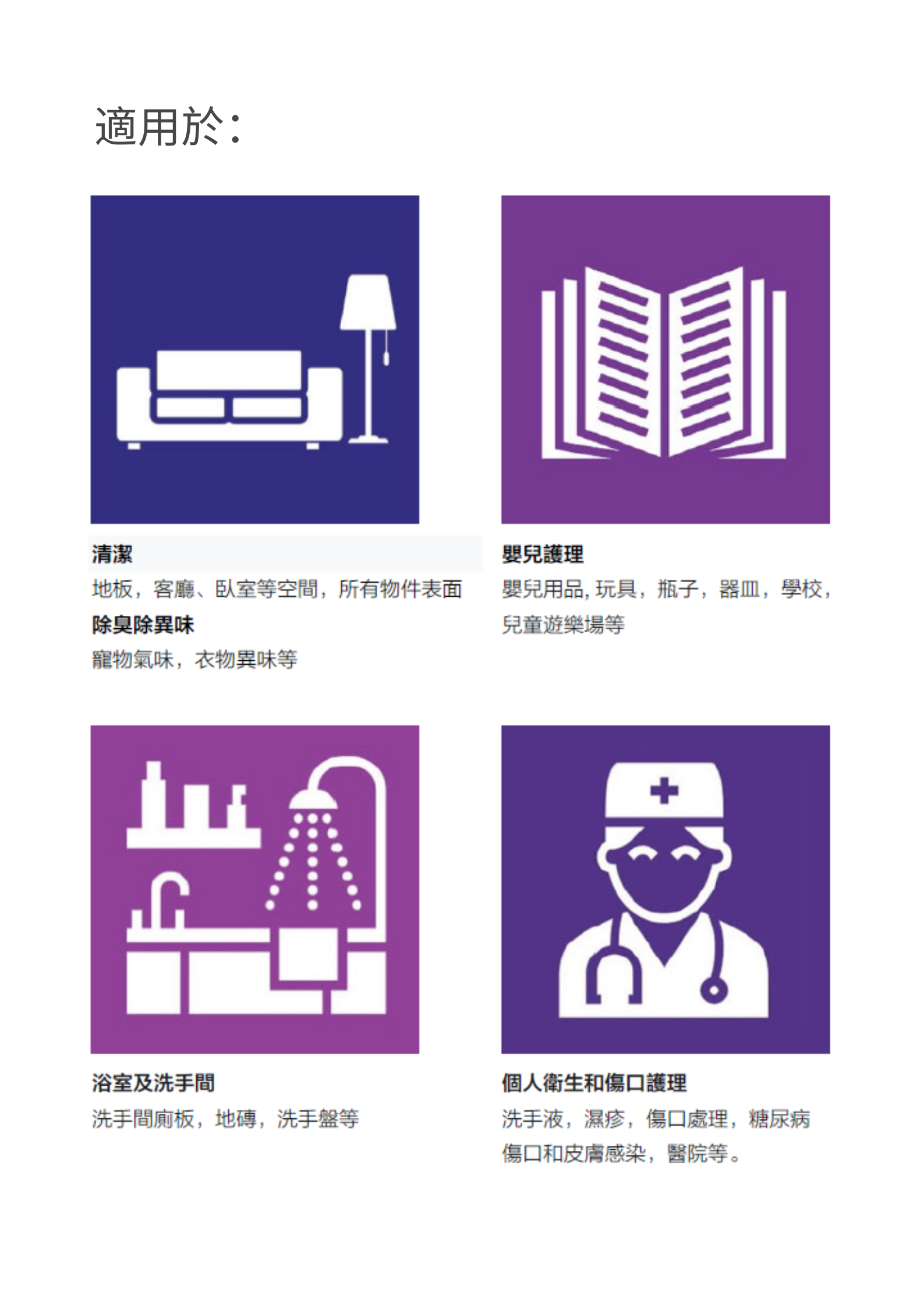 可殺滅99.999%病毒細菌|  淨化空氣、防止細菌及病毒散播 | 主要成份:次氯酸(HOCI)|不含酒精;對人體無害 | 無色, 無味及有特強除臭功能|   孕婦、嬰兒、寵物可放心使用| |不拍觸及耳口鼻 | 可用於面部、身體皮膚及傷口患處| 可使用於濕疹, 痘痘, 手足甲部真菌, 口腔細菌、及寵物皮膚患處